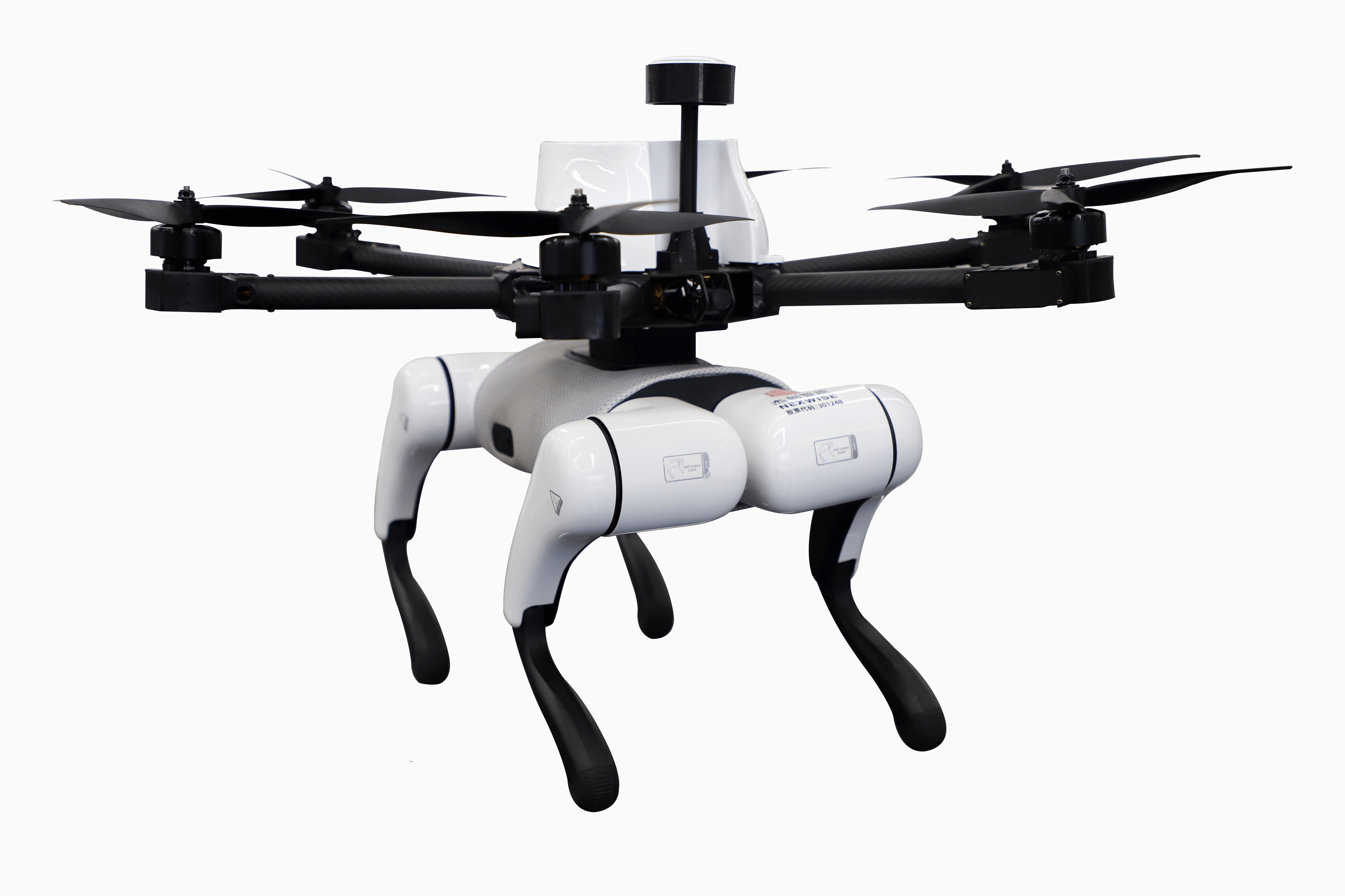飛天機器狗是首款深度融合機器狗與無人機的具身智能裝備,集陸地行走和空中飛行于一體能在復(fù)雜的天氣和地形中穩(wěn)定作業(yè),執(zhí)行目標(biāo)搜救、應(yīng)急物資運輸?shù)热蝿?wù)。在消防救援場景中飛行組件可垂直升空攜帶機器狗本體快速抵達(dá)搜救樓層,著陸平臺后機器狗可攜帶消防裝備及應(yīng)急物資穿越坍塌建筑殘骸,AI紅外視覺系統(tǒng)快速穿透煙霧識別受困人員所在位置,提供更安全更高效的救援解決方案。